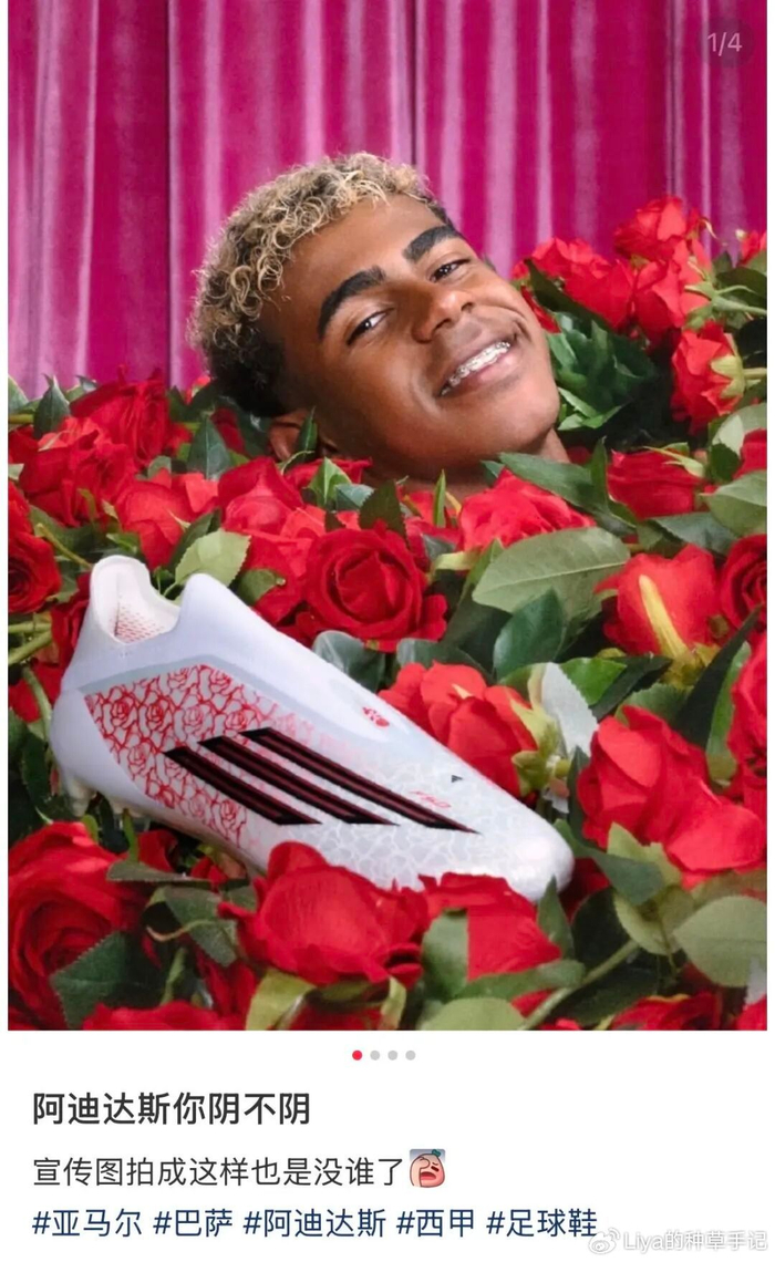 本来想借着玫瑰花的浪漫气息,给这位巴萨小将的新战靴造势,结果愣是让网友看出了满屏的“阴间风”。